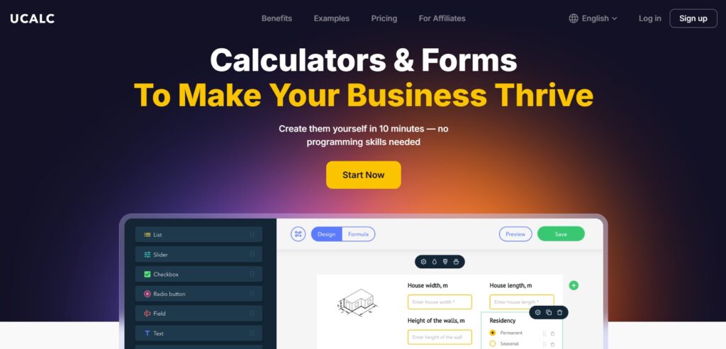 uCalc is a no-code calculator builder that helps you create dynamic pricing estimators, ROI calculators, booking forms and quizzes. It’s perfect for service providers who want to display transparent pricing or product configurations directly on their site.